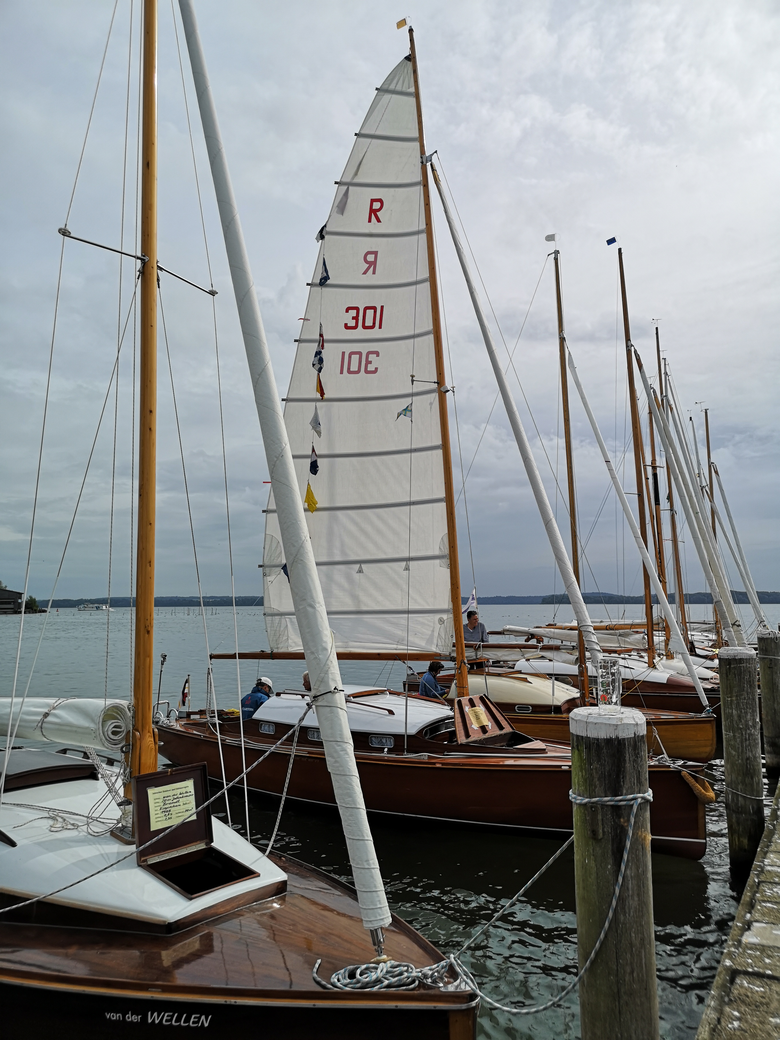 Nun Kreuz zum Ziel. Hier mache ich den Fehler, dass ich am Ende auf Steuerbordbug beim Startschiff durchs Ziel gehen will – nur ist da eine durchgehende Reihe von Jollenkreuzer , die alle das Pin-ende auf Backbordburg ansteuern. Wenn ich parallel zu denen fahre, verpasse ich die Ziellinie. Ich entscheide mich zum Wenden, um hinter dem neben mir fahrenden Boot durchzugehen, verschätz mich aber mit dem Wendekreis und komme nur ganz knapp am Heck vorbei. Dann schnell durchs Ziel und fertig.