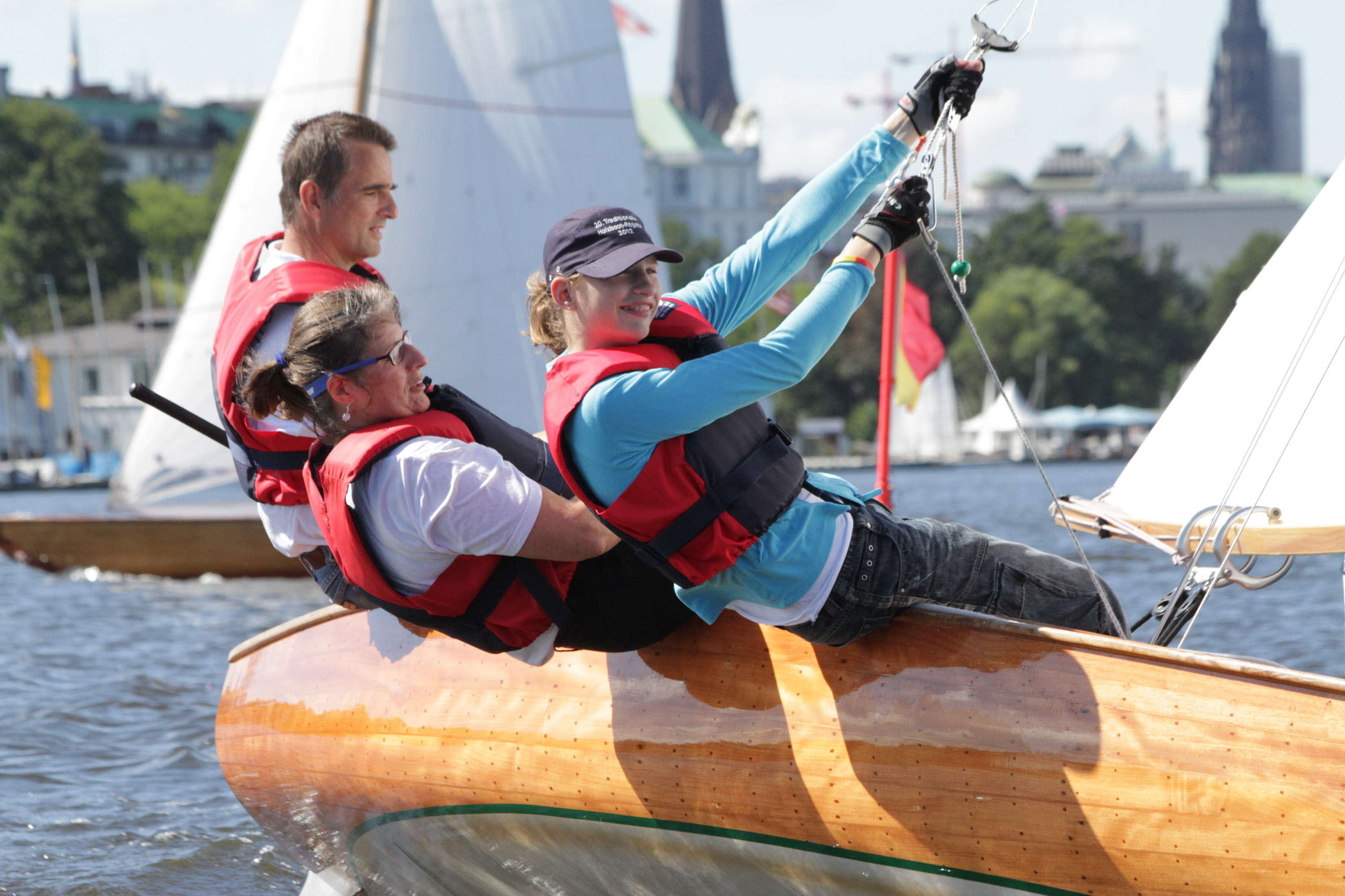 Am 11. und 12. August 2012 ging es mit Renate, Larissa und Christl zum Hamburger Segel-Club. Bereits zum 20. Mal wird hier die traditionelle Holzbootreagatta auf der alster ausgetragen. 68 Boote hatten gemeldet und eines davon waren wir.
