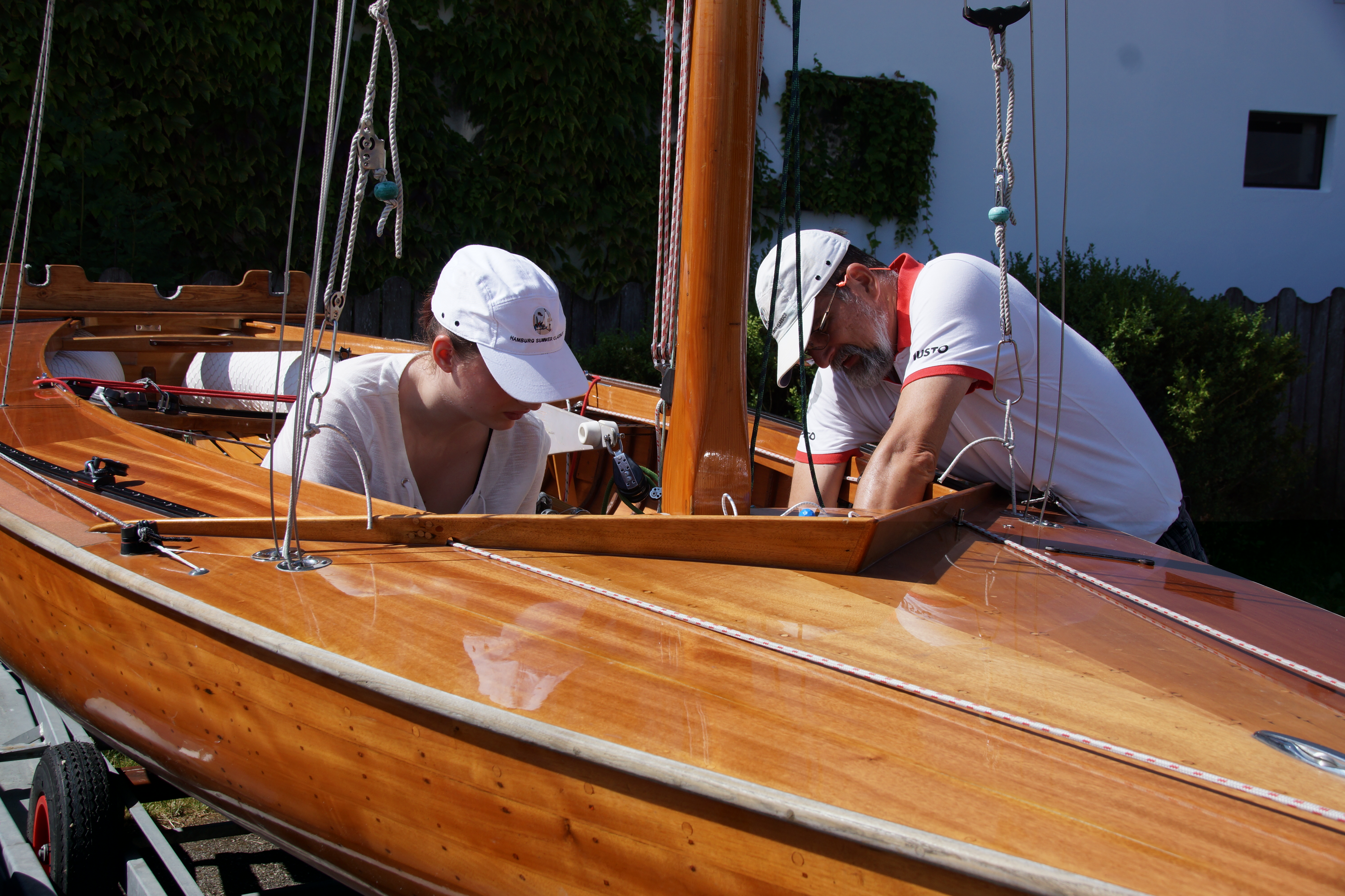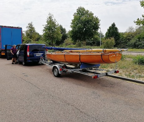 Der Montag beginnt sonnig, bei 30 °C. Wir stehen um 9 Uhr auf, erst wird gefrühstückt, dann riggen wir Christl auf dem Hänger auf. Nach 2 Stunden Betätigung in der prallen Sonne sind wir alle erstmal durch.