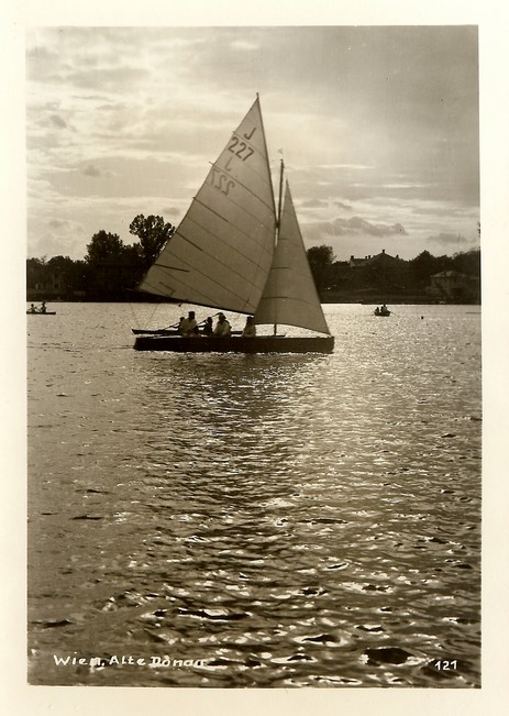 J 227 "Fery" auf der alten Donau in Wien. Das Boot war bis 1927 als "Maricuccia" beim Union YC Attersee registriert, dann nur noch beim Union YC (ohne Seeangabe). Das Baujahr muß vor 1926 liegen.