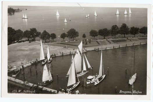 Hafenszene aus Bregenz, im Vordergrund J 378 "Falkland III".