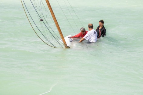 Die "Volker" vom Bodensee nach ihrer Kenterung bei Schlepp nach Hause.