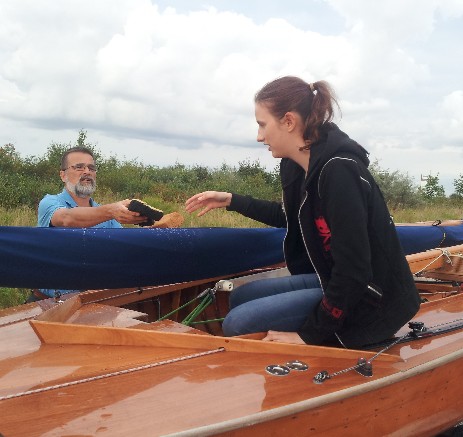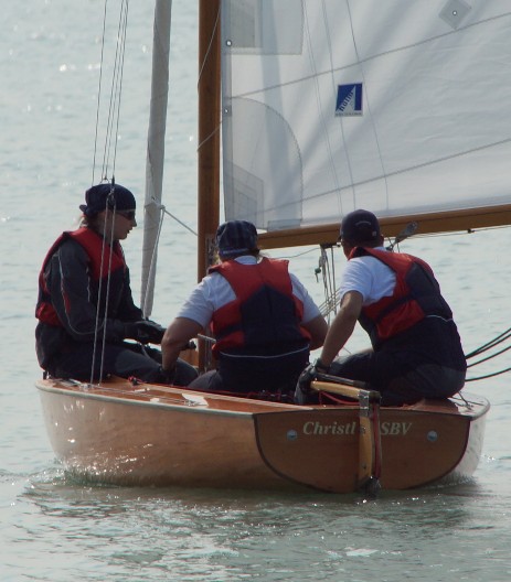 Das Begleitboot ist sofort bei uns, aber wir kommen zurecht: Renate kommt an Bord, zu dritt schöpfen wir weiter und dann segeln wir heim. Wir haben relativ schnell wieder nur noch 10 cm Wasser über den Bodenbrettern, kurz überlegen wir, das nächste Rennen noch zu starten, aber wir sind uns einig heim zu segeln. Mit Lenzern wäre das Weitersegeln evtl. eine Option gewesen, aber mit dem Restwasser sind wir im Rennen sowieso chancenlos und mit Schwämmen das Boot unterwegs trocken zu legen - das wird nix.
