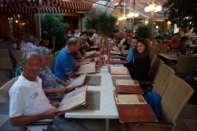 Gemeinsames Abschieds-Abendessen mit allen J-Jollenseglern im Restaurant Bela Étterem an der Promenade von Balatonfüred.