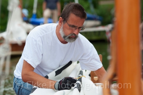 Also Im Regattabüüro fragen gegangen, ob nicht vielleicht jemand Lust hat zu segeln? Frau Janßen weiß Rat: Ihr Sohn Linus, frisch gekührter Dritter der Deutschen Teeny-Meisterschaften unter 14 wiegt zwar nur 38 kg, hat aber Lust und Zeit. Also Reff eingebunden, Linus an Bord geholt und Los geht's.