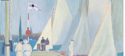 Eckehard Erben (Trapezen vor der Hamburger Flagge und Auftuchen im Sonnenschein).