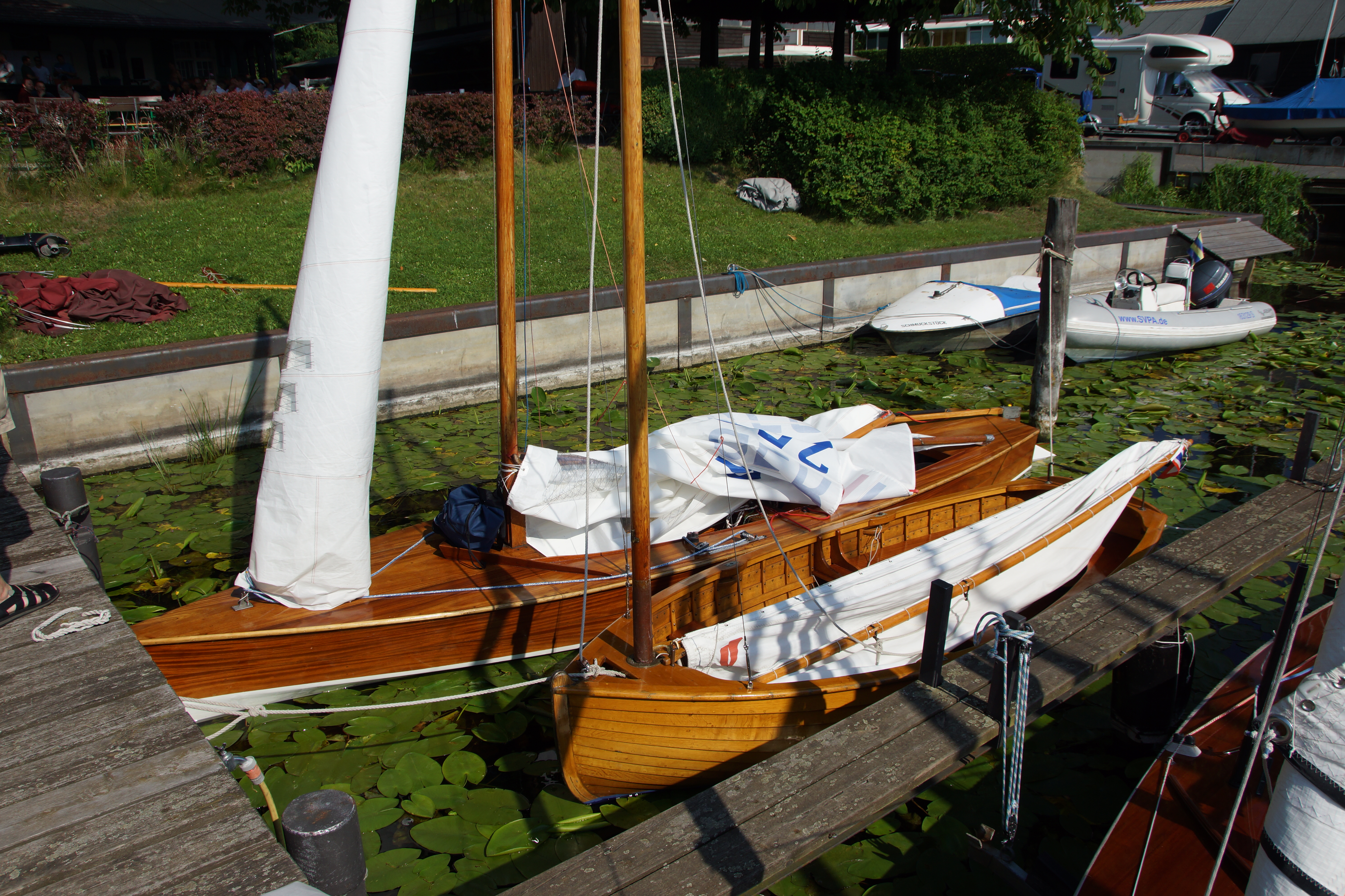 Beim ASV angekommen, müssen wir uns erst einmal orienteren. Alle sind hilfsbereit, die Veranstaltung ist routiniert und gut organisiert., Wir laden ab, riggen auf und verhohlen an einen freien Liegeplatz.