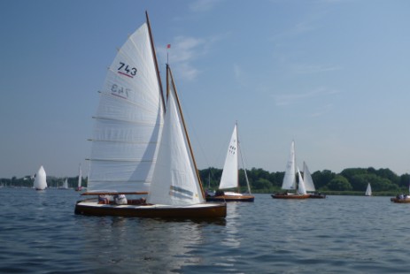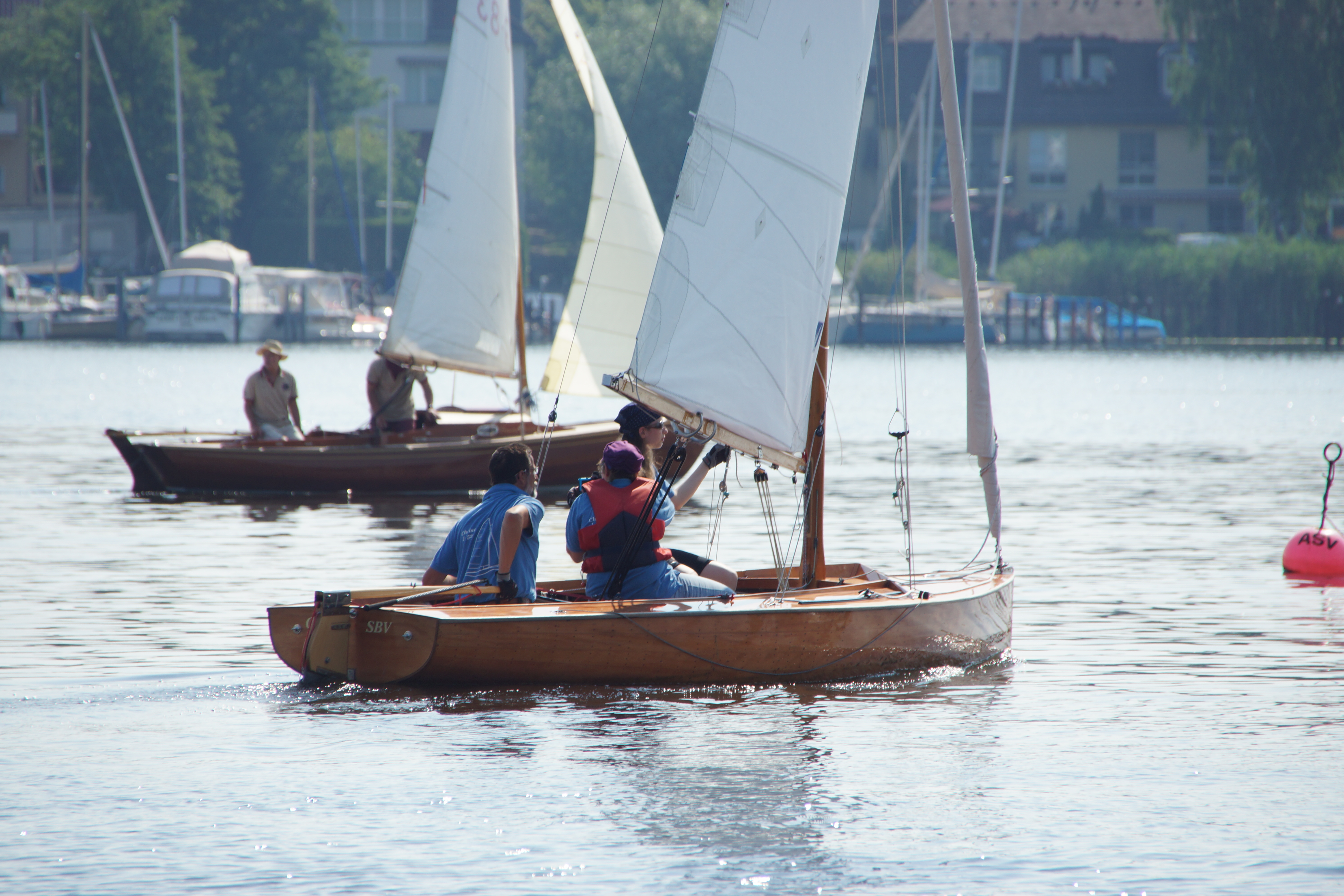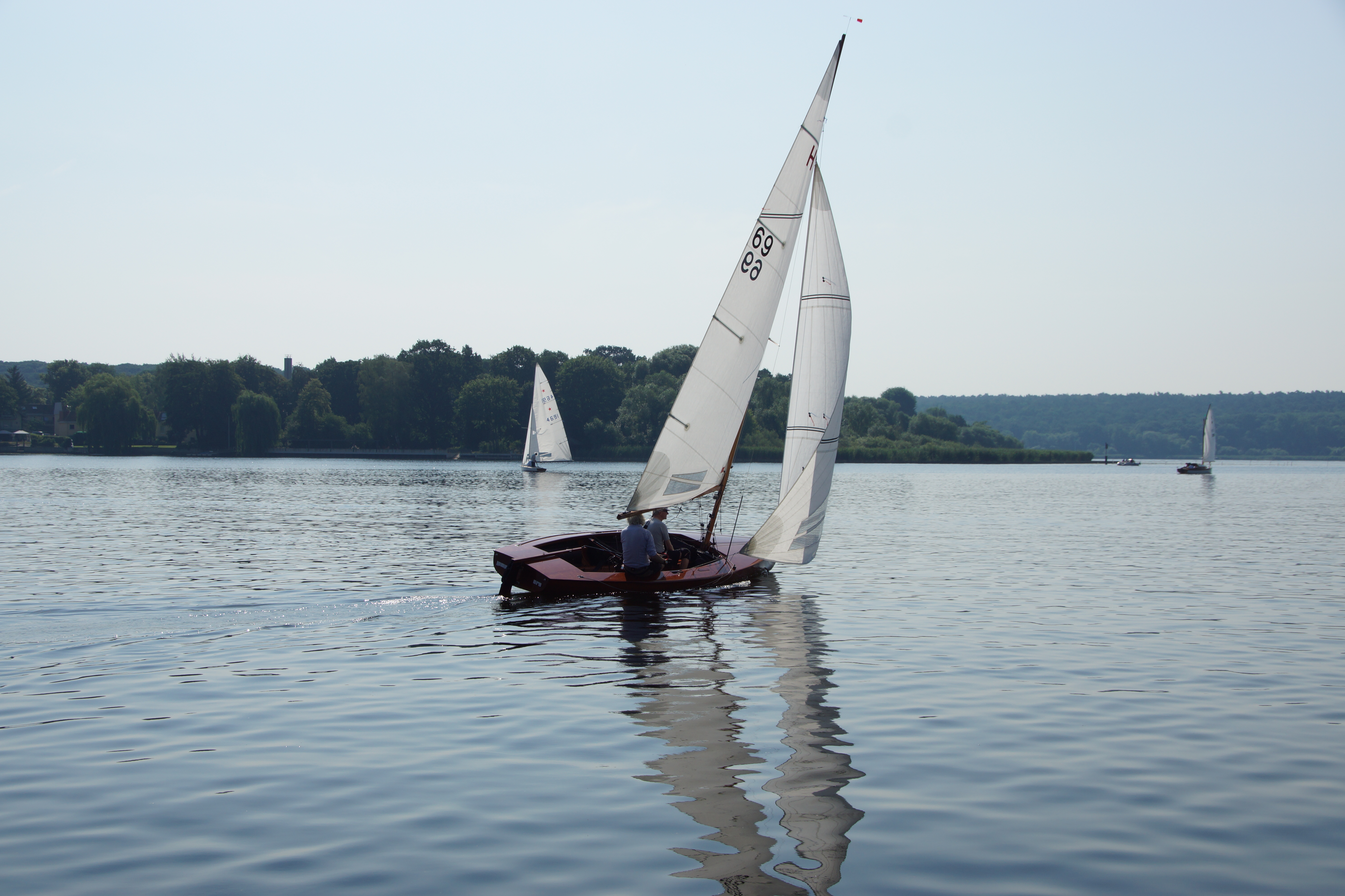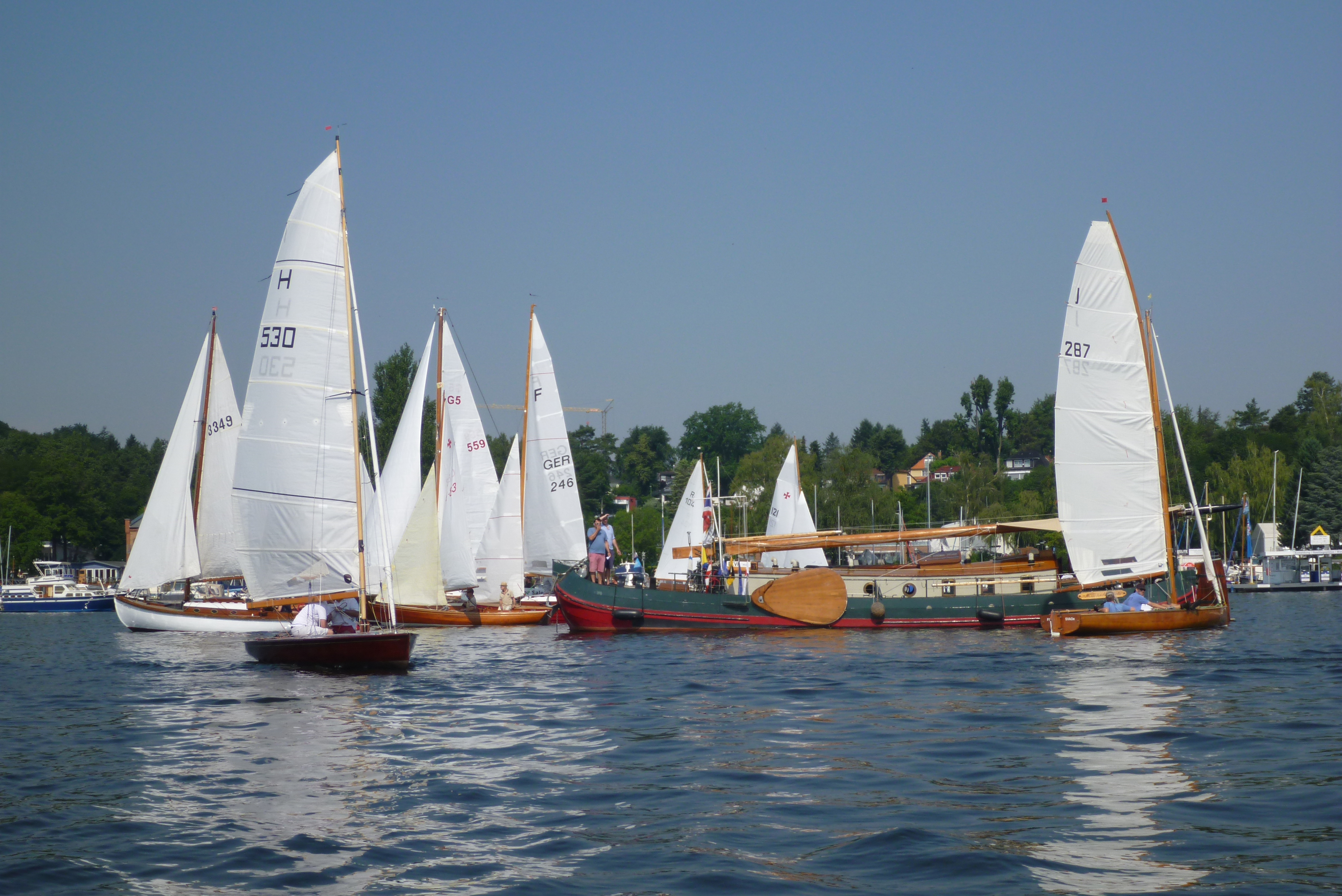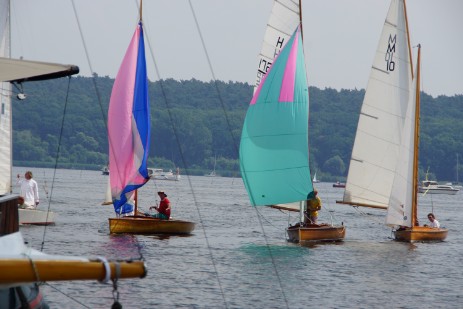 die nächsten Jollen: zunächst H-Jolle H-785 Gazelle (nicht im Bild), dann Schratz G-180 Fratz, H-Jolle H-172 Kleine Briese und M-Jolle M-10 Berlin Bill