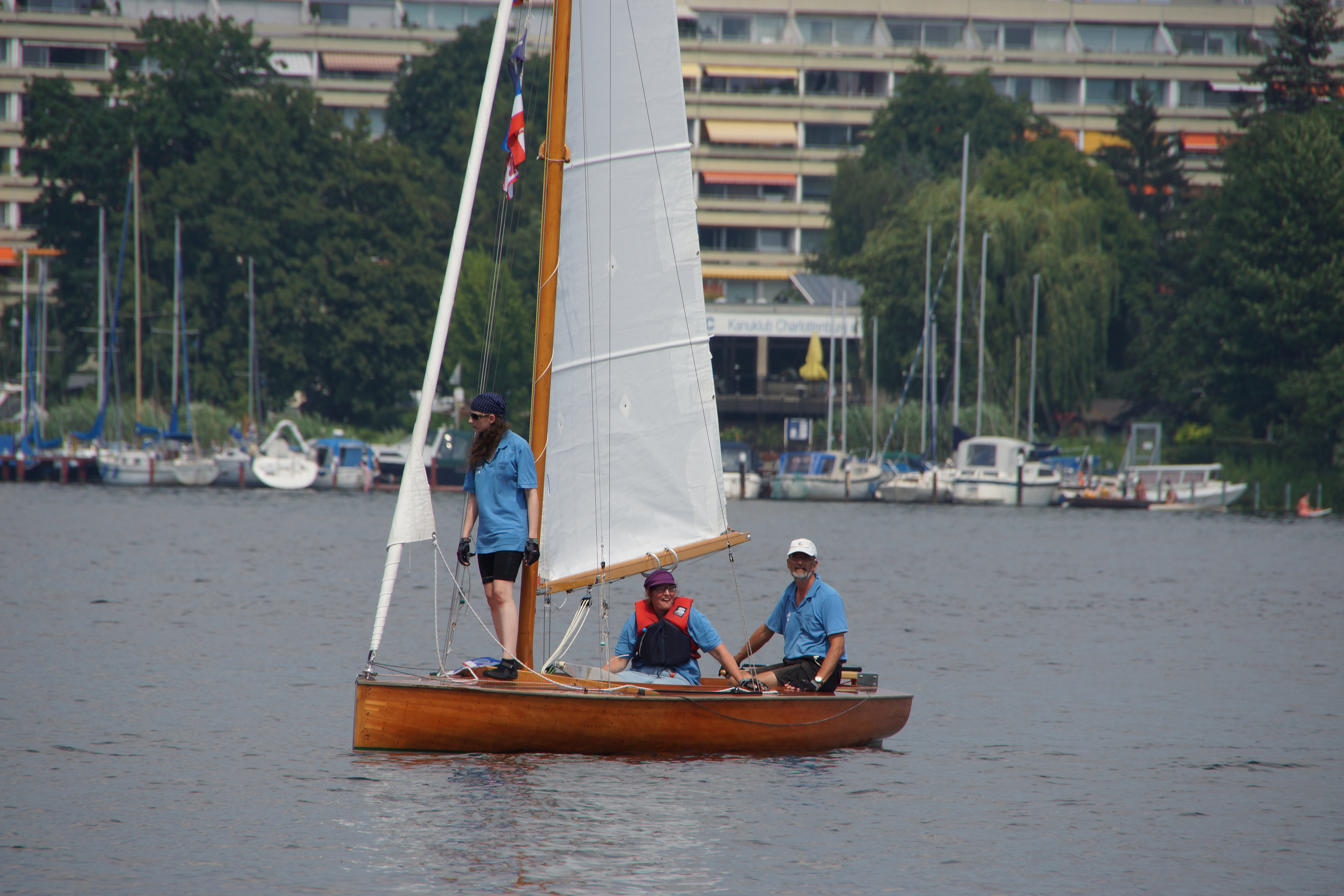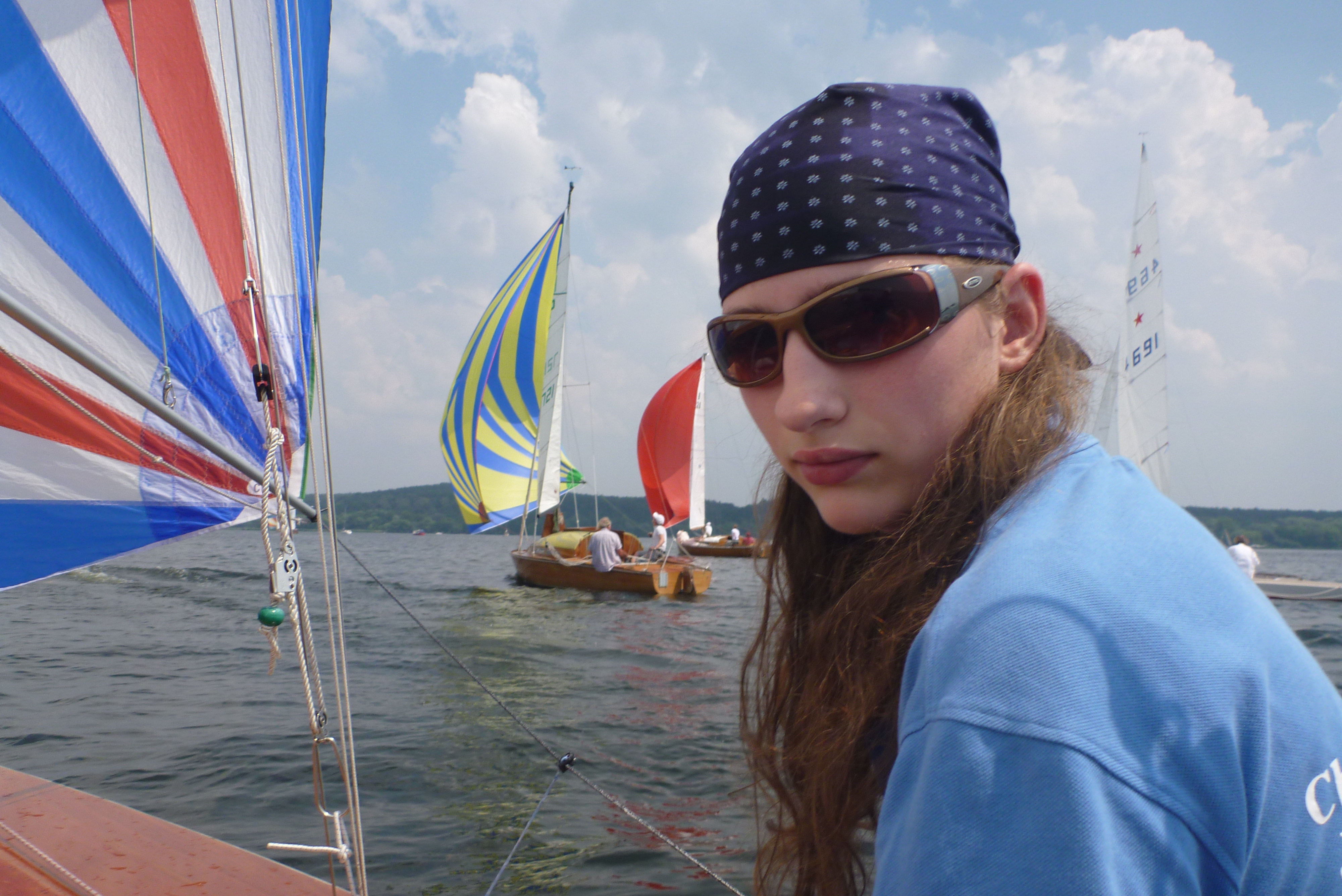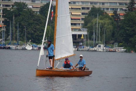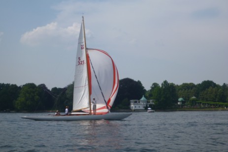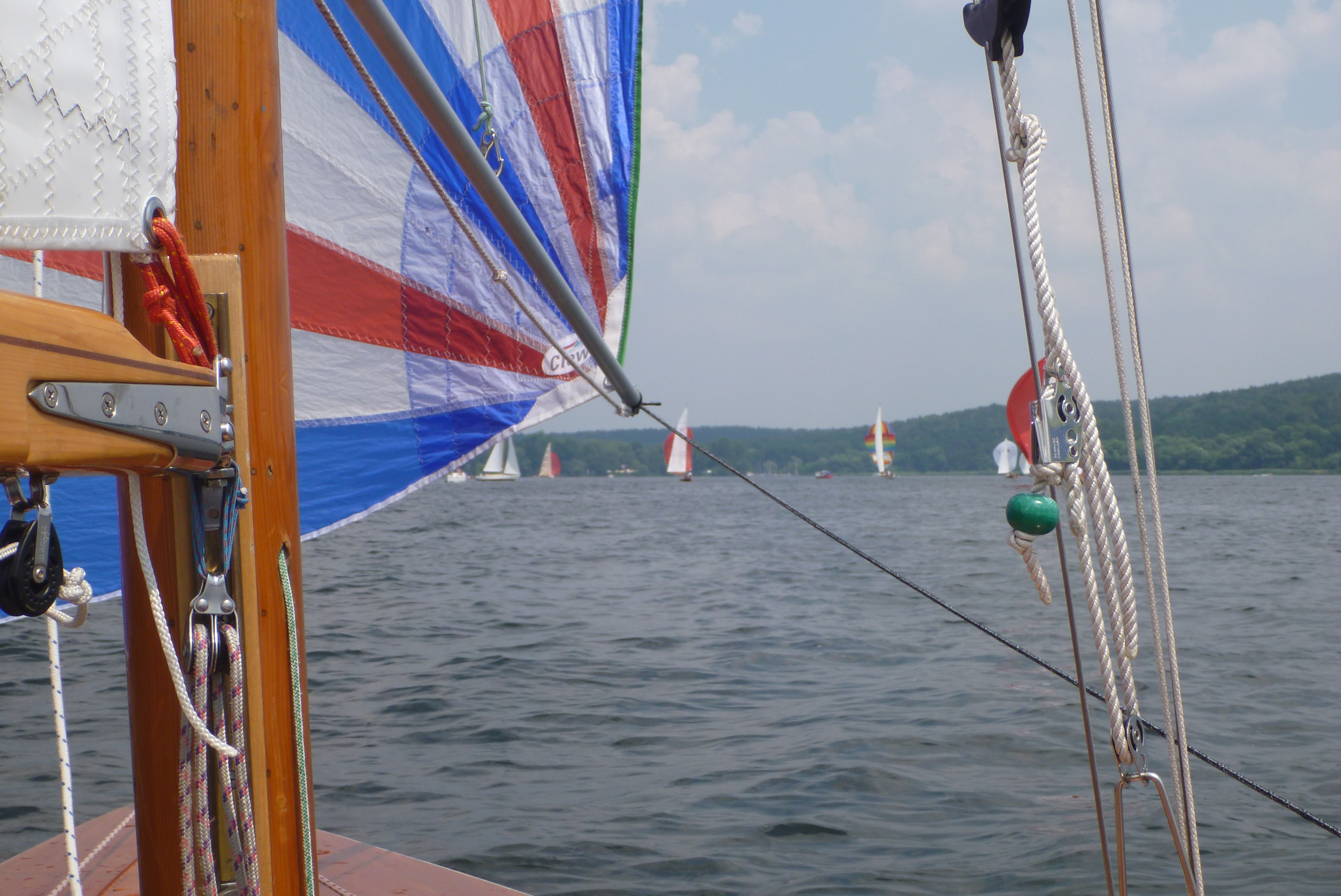 An der Wendetonne sind sie alle wieder bei uns - das Segeln in die Flaute unter dem Kladower Ufer machts möglich. Ab jetzt geht's zurück. Zunächst noch auf Halbwind bis Am-Wind-Kursen, ab Höhe Schwanenwerder hat der Wind dann so weit auf Süd-West gedreht, das der Spi wieder gesetzt wird. Die Manöver klappen inzwischen gut.