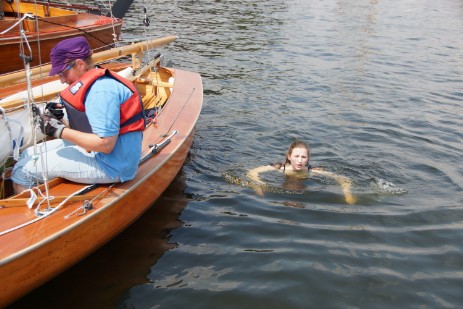 Nach dem Anlegen und Aufklaren nehmen wir alle ersteinmal ein erfrischendes Bad in der Havel!