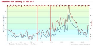 Samstag, 25. Juni, der Regatta-Tag: Obwohl es noch früh am Vormittag ist, ist es bereits wieder hochsommerlich warm. Über den Tag wird die Temperatur wieder bis auf 33 °C steigen.