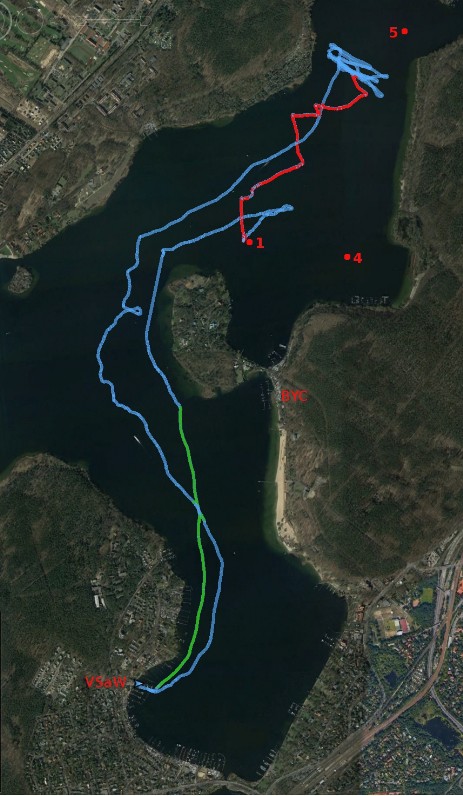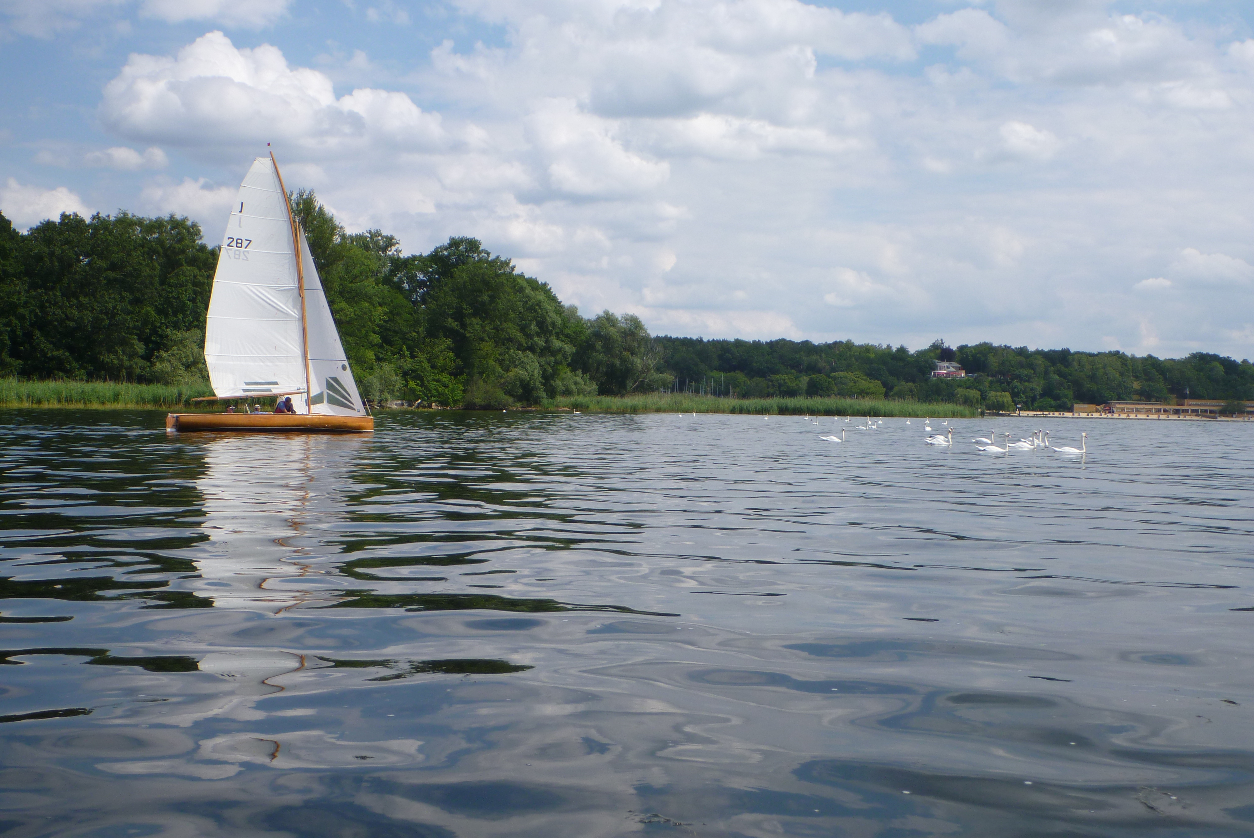 Bei südlichen bis westlichen Wind geht es raumschot Richtung Schwanenwerder, die Bahn steht noch nicht fest: Evtl Bahn Nr.2 ( bei Wind aus NO), evtl Bahn Nr. 7 (bei Wind aus SW) werden diskutiert.