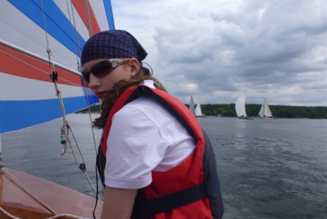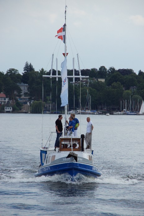 Lieselotte, unser Startboot, auf dem Weg zum BYC