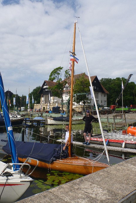 Beim zweiten Start soll ich nicht so ins Gewühl: Also Start auf Backbordbug aus der zweiten Reihe. Wir sind ganz gut über dieLinie, aber ich würde gerne wegwenden, um im windigeren Havelfahrwasser zu bleiben; das kann ich aber nicht, da wir dann mit Steuerbordbug quer durch die Meute müßten.