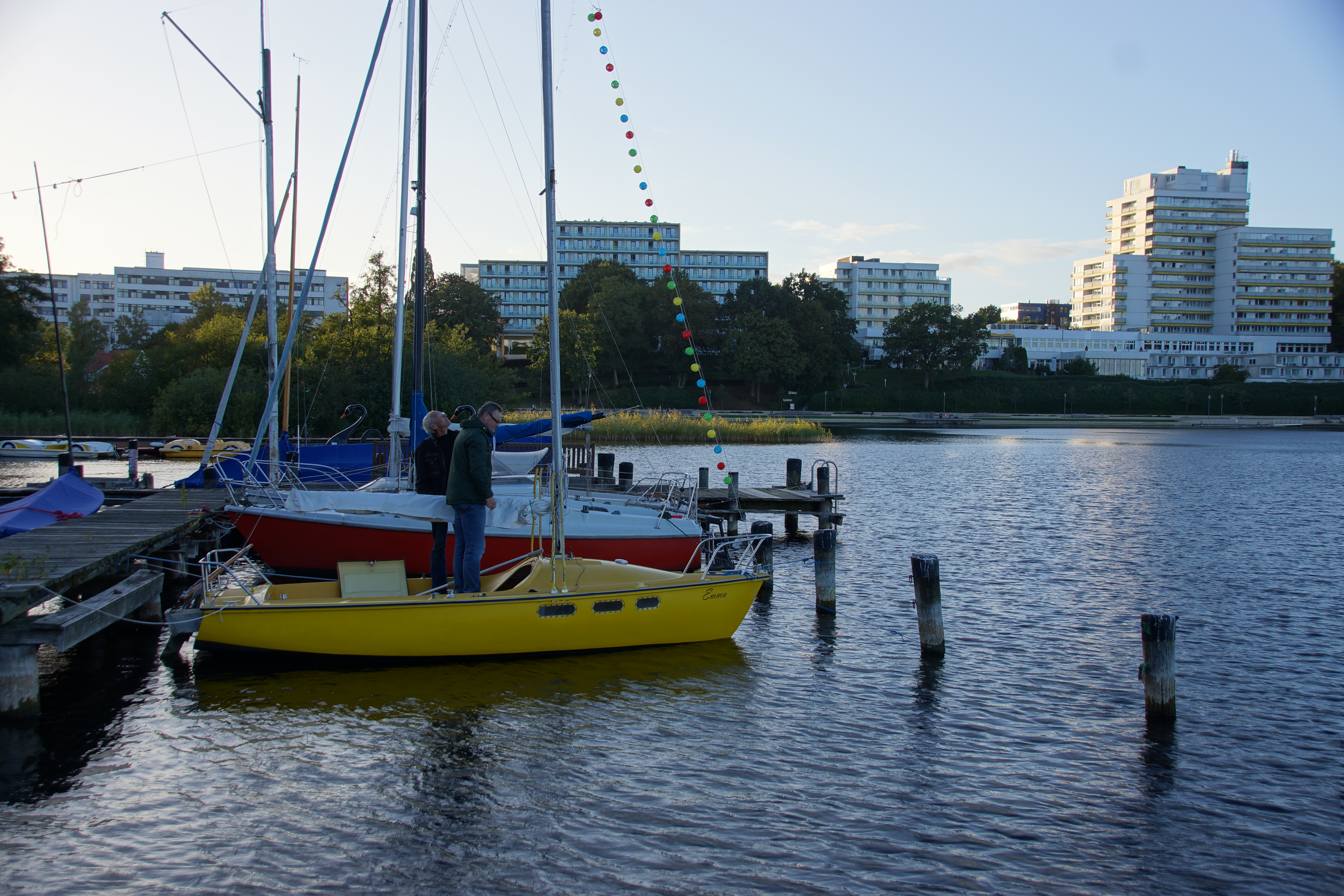 In 2017 waren nur 4 Boote am Schleppverband des SBV, dieses Jahr waren wir 10 Segelboote. Dazu kamen noch die beiden Kanus Keiler und Wildsau, beide geschmückt von Conny. Beide wurden vor der Promenade gerudert.