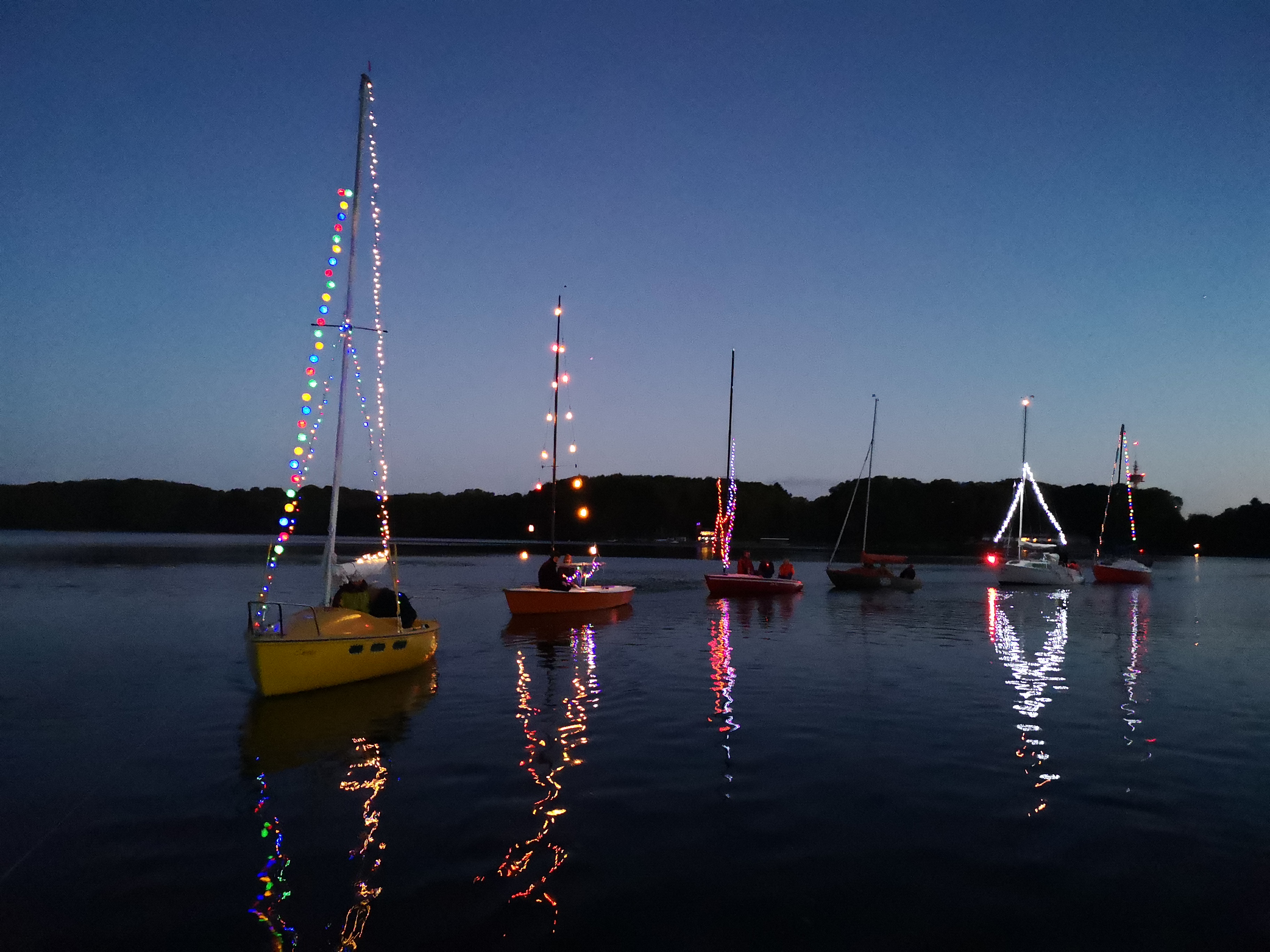 Mit der Vielzahl an Schiffen es brauchte seine Zeit, bis sich der Schleppverband hinter dem Boot der DLRG formiert hatte. Schließlich aber leuchteten die Boote um die Wette und bildeten mit den Schiffen vom SSC eine wunderschöne Kulisse für den Laternenumzug.