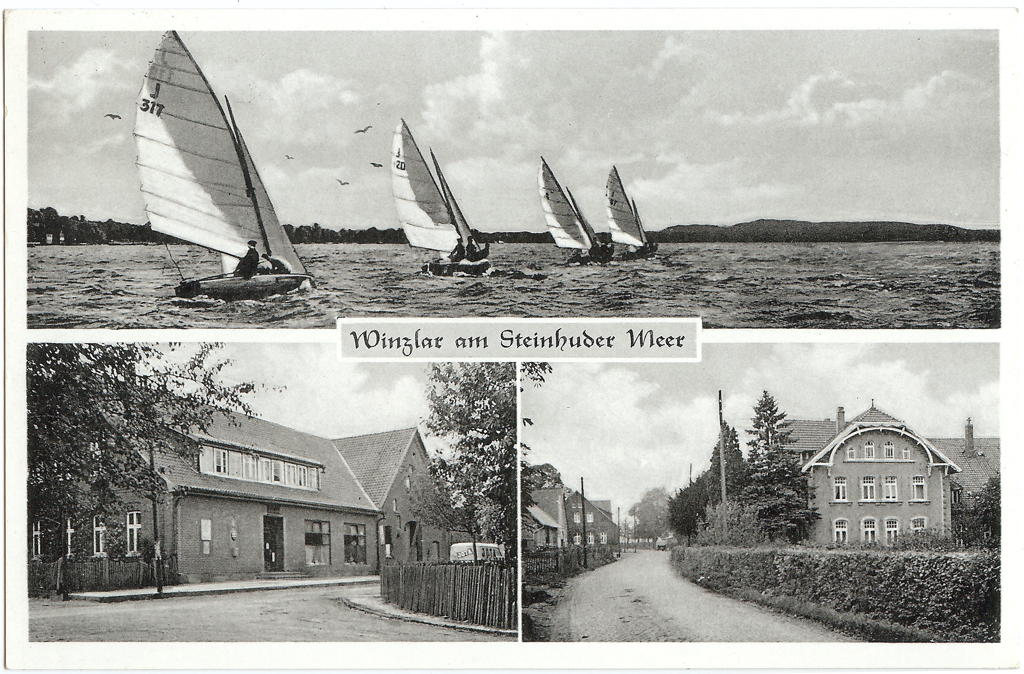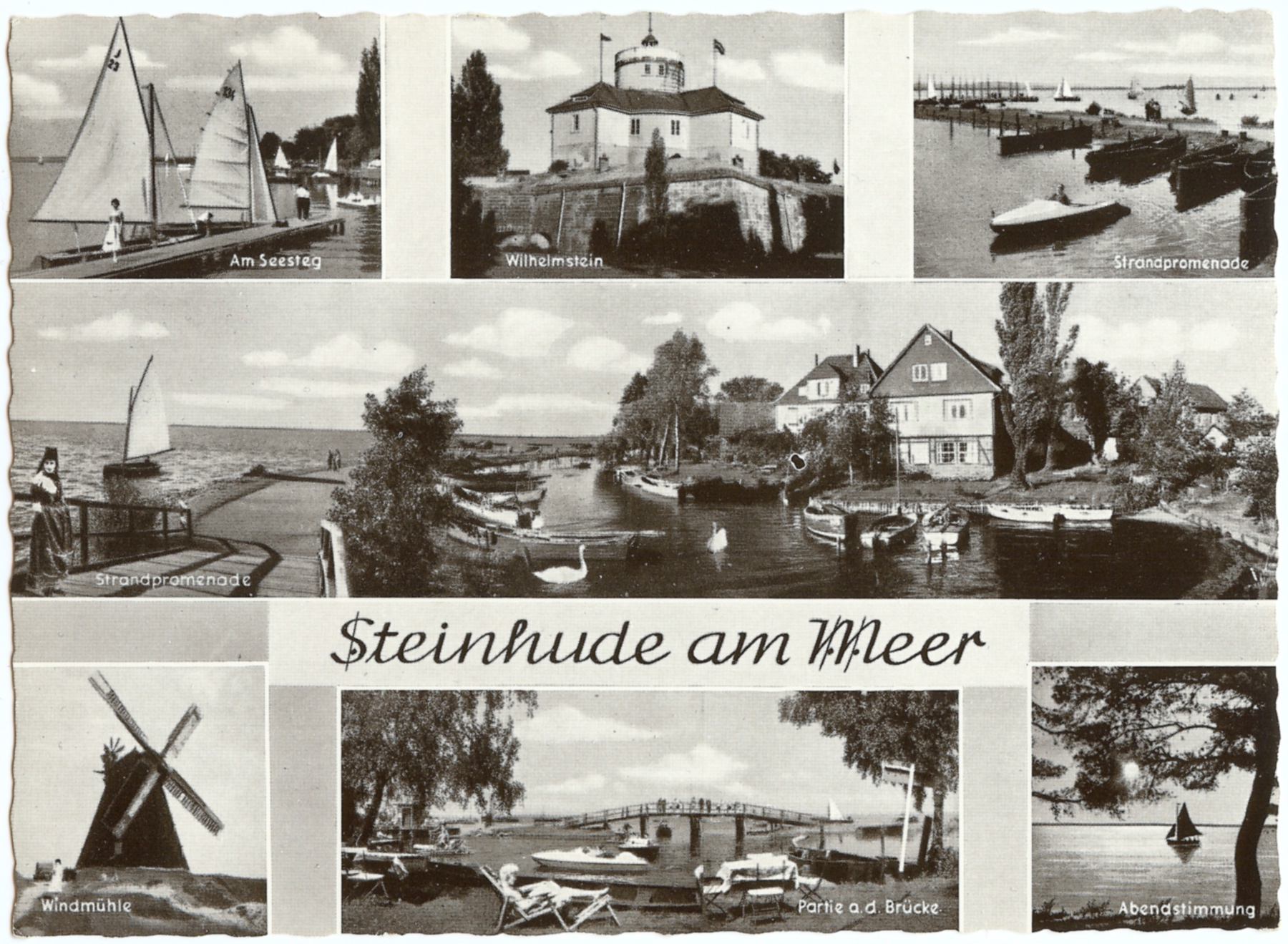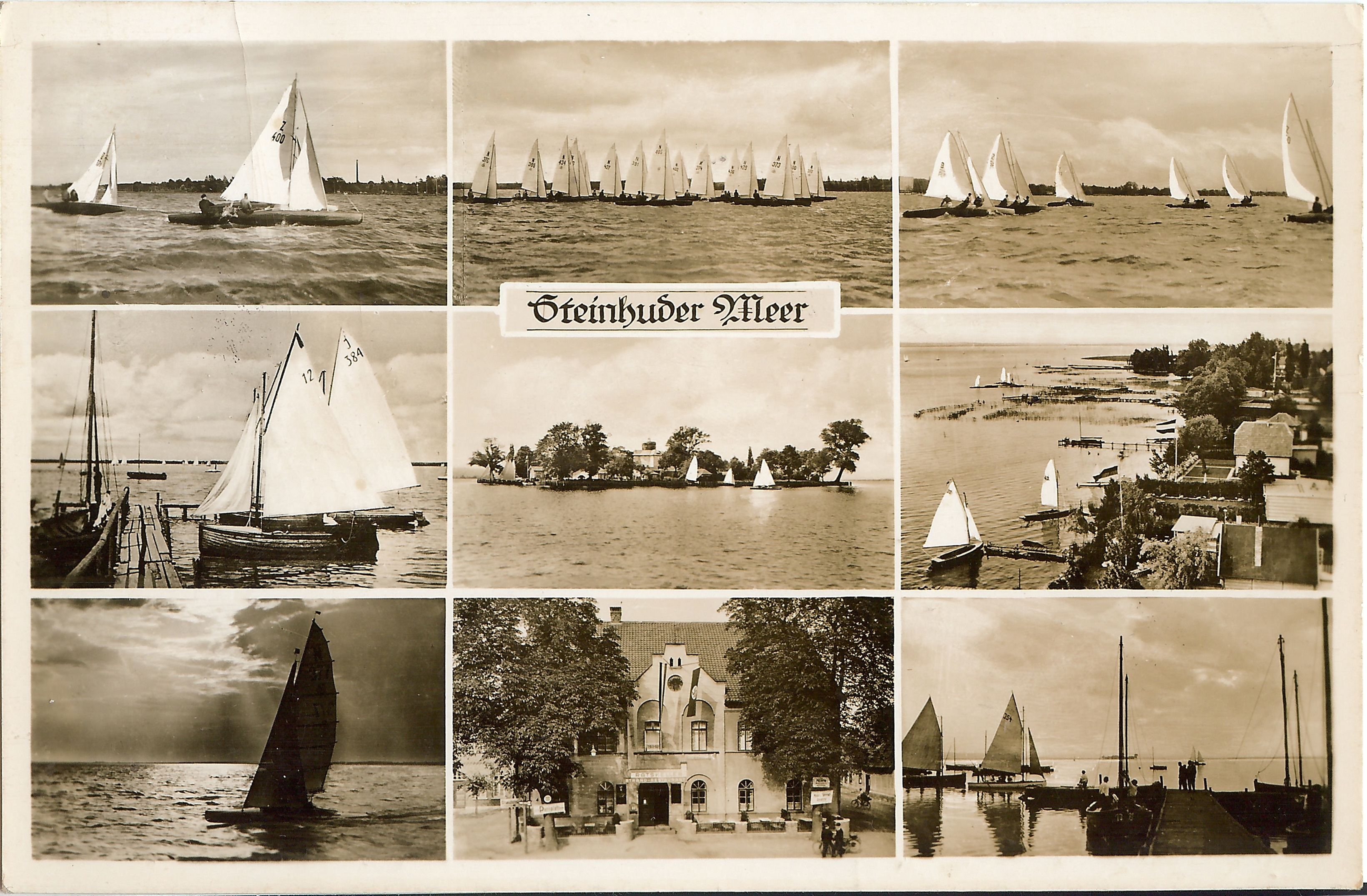 Noch einmal die unbekannte J-Jolle J 23 am Steg am Steinhuder Meer, Zeitpunkt der Aufnahme unbekannt. Photographie: Verlag Glanz Karte?, Karte ungelaufen