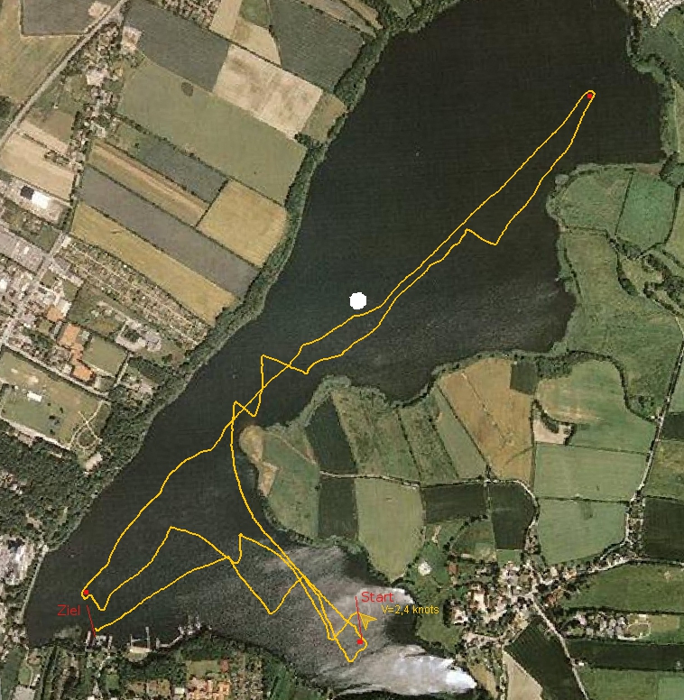 Im Kursverlauf macht sich dieses mißglückte Manöver als S-Schlenker hinter der Untiefe bemerkbar. Dann gehts weiter zur Tonne vor Klüthsee hoch, die wir jetzt gut anliegen können. Das Feld ist inzwischen weit achteraus.