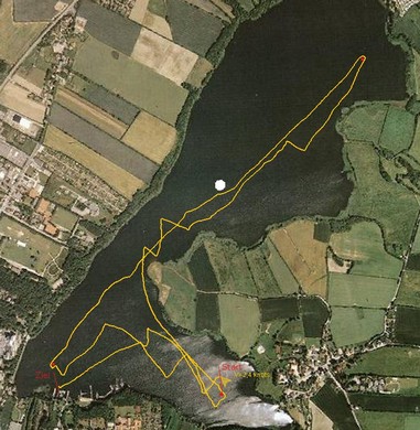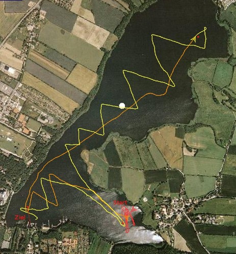Nach Spitzenort geht's dann Halbwind bis zur Stipsdorfer Tonne und von dort erst unter dem Nordufer der Stipsdorfer Bucht zurück und dann mit 2 Kreuzschlägen in's Ziel.