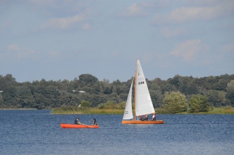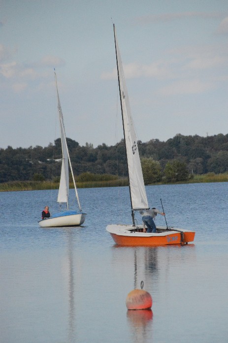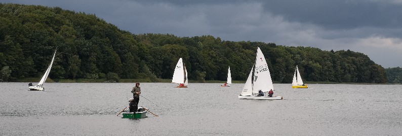 Ich wollt nicht drängeln und Renate laboriert an ihrer Knieprellung also sind wir erst 45 Minuten vor dem Start losgefahren und als wir am Verein ankommen, laufen die ersten beiden schon aus. Mit dabei sind Conny mit seiner Tochter Britta auf dem Zugvogel Flora, Hanni auf seinem Monarchen Lumpi, Winni hat bei Berndt auf dem Flying Cruiser Emma angeheuert. Michael H. ist auf dem Vereins-Conger M-Runde dabei und Jörgs Sohn Jan startet mit seinem Optimisten.