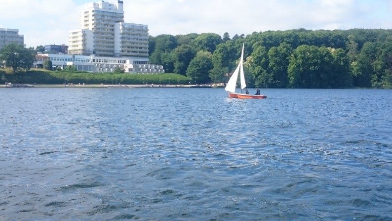 Bei wechselnden, vorwiegend eigentlich westichen, Winden starten wir in der Stipsdorfer Bucht richtung Promenade. Vor Ort weht der Wind aber eher aus SO-S , sodass es ein Raumschots bis Halbwindstart wird.