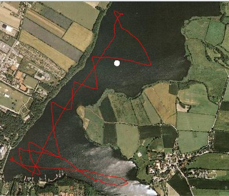 Da wir Süd – Südwest haben, starten wir bei Spitzenort zwischen der dort liegenden Tonne des SSC und dem StARTBoot, dann geht es zur Tonne vor der Promenade, die lassen wir backbord (Achtung! Dies Detail wird noch wichtig werden!) , segeln nach Stipsdorf, dann rund Spitzenort zu Erdmanns und dann direkt zurück zur Ziel zwischen Promendentonne und Stegkopf.