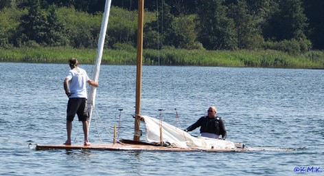 Heute übernimmt Manfred Jakob die Pinne und Larissa segelt bei Ronald Frischmuth auf seinem Jollenkreuzer mit. Der Start ist für 10 Uhr geplant, aber zunächst gibt es Startverschiebung.