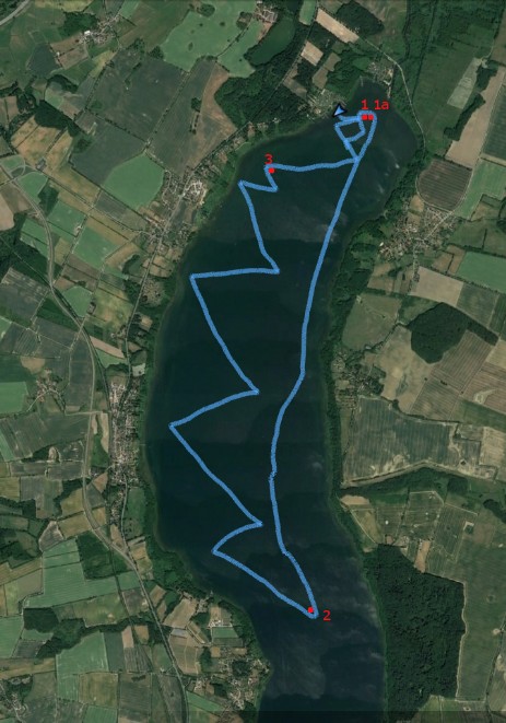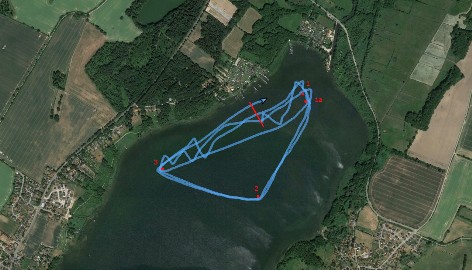 Start ist jeweils zwischen Steg und Spiere vor dem Verein, Tonne 1 liegt kurz nach dem Start vor Rothenhusen, Tonne 2 unter dem Ostufer, 3 am Westufer, 4 Richtung Ratzeburg (bzw. gegenüber von Bchholz). Ziel ist dann wieder vor dem Verein.