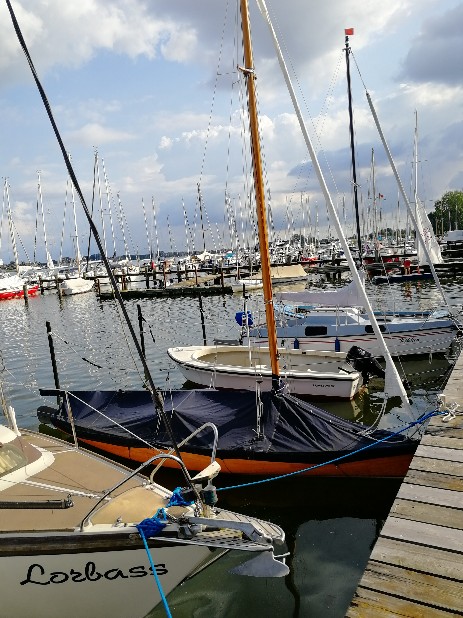 Es sind letztendlich 2 Boote übrig geblieben: Jörg und Gabriele mit ihrer Etap 20 „Selena“ und wir mit der J-Jolle „Christl“. Renate hatte sich mit einer Sommergrippe in’s Bett abgemeldet, also war ich mit meinen Töchtern Larissa und Natascha auf „Vater-Töchter-Tour“. Am Samstag sind wir nach Kappeln an die Schlei gefahren, dort haben wir eine Slipanlage gesucht. Da diese nicht einfach zu finden war, haben wir letztendlich gekrant. Den Nachmittag haben wir dann damit verbracht, in Ruhe aufzuriggen. Abends sind wir in Kappeln Essen gegangen.