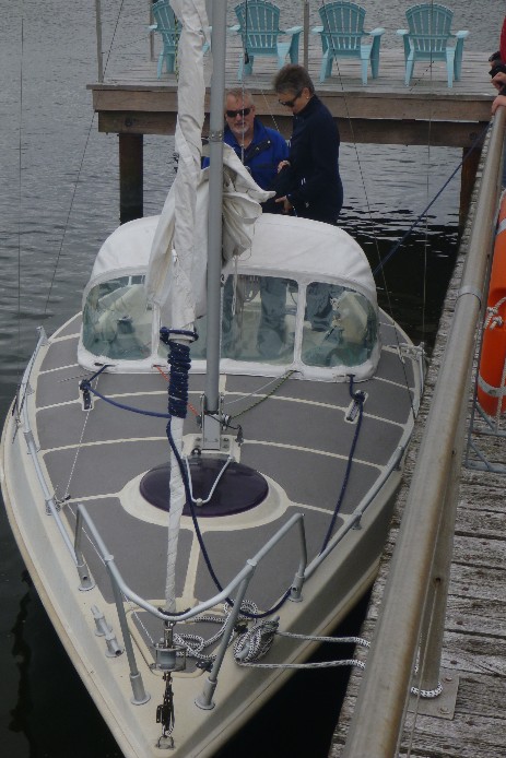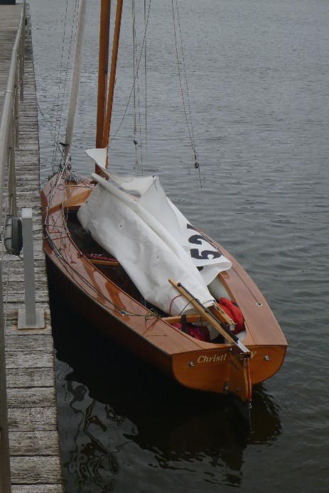 Selena in Lindaunis mit zerfetzter Fock nach dem Ritt von Kappeln nach Lindaunis