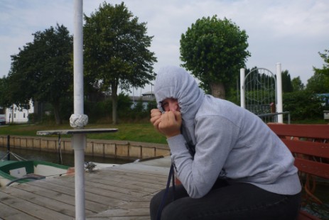 Der nächste Tag brachte Wind aus Ost. Jörg musste zunächst einmal seine Fock reparieren lassen und Gabriele hatte uns leider schon am Vorabend verlassen müssen. So haben wir Jörg mit Christl nach Arnis gebracht, anschließend sind wir die Schlei abwärts gekreuzt, sind durch die Brücke in Kappeln gesegelt und anschließend weiter bis wir das Naturschutzgebiet bei Schleimünde am Horizont sehen konnten. Wir mussten hier gegen den Ostwind ankreuzen und so habe ich es geschafft die Tiefe der Schlei (mit dem Schwert) auszuloten: Ich musste aussteigen, um unser Boot wieder flott zu machen, anschließend ging es dann auf gleichem Weg wie wir gekommen waren, wieder zurück. Über Mittag war dann erst einmal Regen angesagt, aber am Abend haben wir zu viert noch eine kleine Ausfahrt mit Selena gemacht: Wir sind bei fast keinem Wind gemütlich bis zur Ansteuerungstonne bei Arnis gesegelt und wieder zurück.