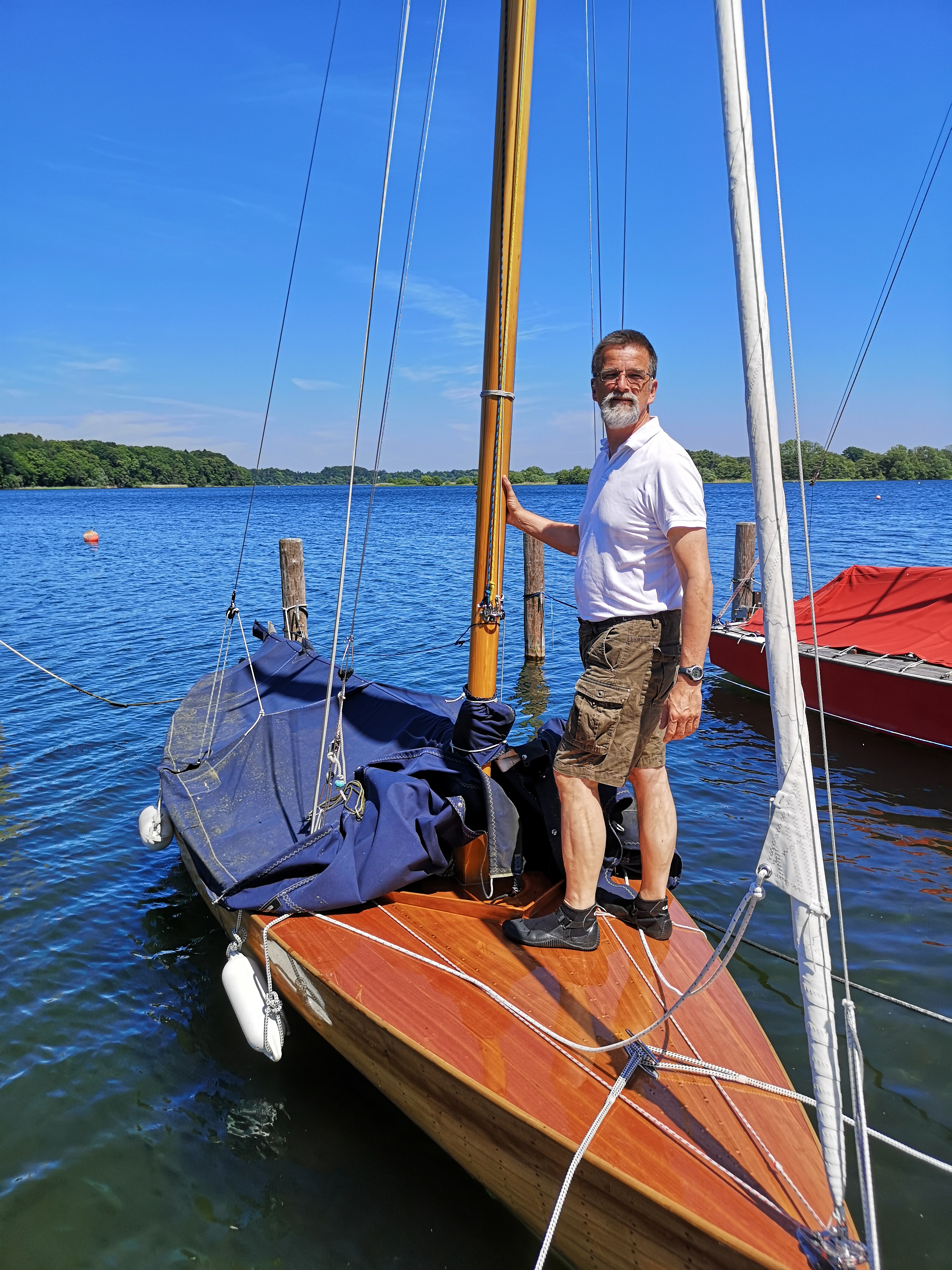 Die zweite Sommerregatta findet ohne Christl statt. Da Larissa an diesem Tag ein Sommerfest ihrer Firma hat und Renate auch nicht möchte, segel ich alleine mit meinem Finn – zumindest bis zur ersten Tonne, da fliegt mir der Baumniederholer weg – womit für mich das Rennen zu Ende ist.