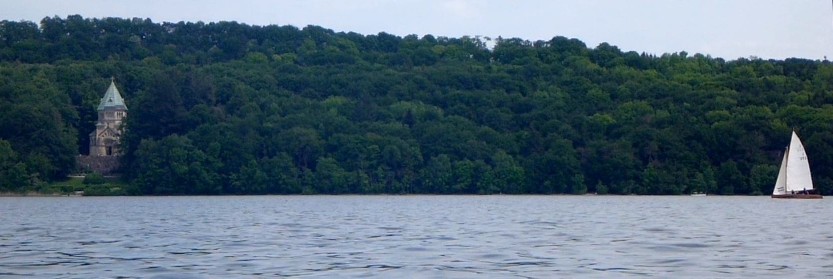 Die Kreuz ist eher ein Anlieger: Wir hatten erwogen, bereits am Anfang einen Holeschlag zu machen - am Ende ist er nicht nötig. Wir starten am Pin und fahren einen etwas mehr zum See hin gelegenen Kurs als das Gros der Boote, die sich unter dem Westufer halten. Einige wenige gehen in Richtung Ostufer noch weiter östlich, die müssen dann einen Holeschlag vor der Roseninsel machen.