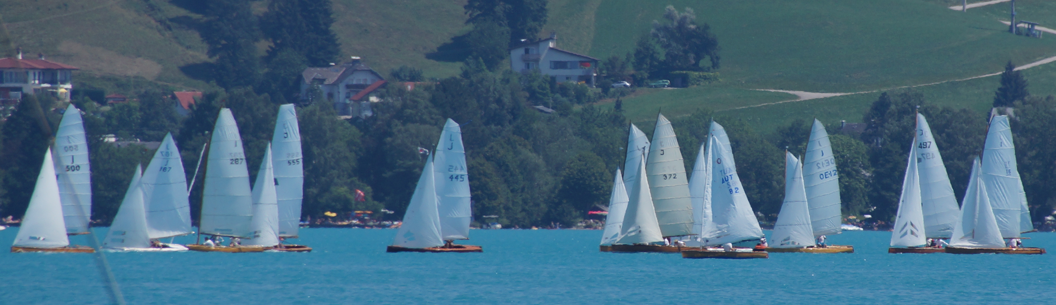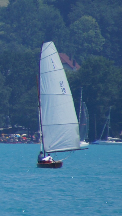 Es sind insgesamt 13 J-Jollen gekommen, 12 O-Jollen und 7 Sonderklassen. Aus dem Norden sind die J 287 Fram und die J 526 Christl da, vom Ammersee kommen die J 500 Zwiderwurz und die J 555 Zygoptera und die J 16 Mannitou, außerdem J 497 Herzblut. Aus dem Allgäu ist J 372 Feuervogel da, vom Bodensee J 445 Bardolino. Die übrigen Boote kommen aus Österreich: vom Wörthersee ist die